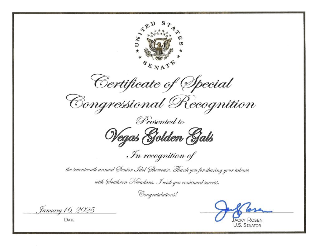 Us Senate Certificate Of Special Congressional Recognition 2025