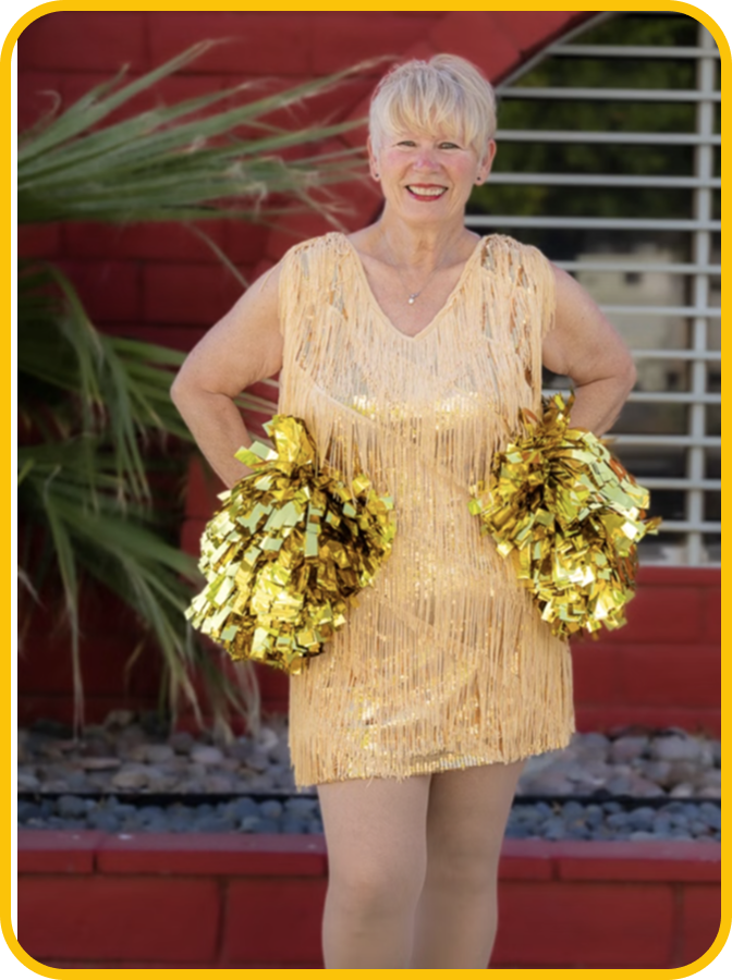 I was so fortunate to find the Vegas Golden Gals through an old high school friend. It is wonderful to have connected with her and be apart of such an amazing, fun, joyful group of women . So happy that without having a history in dance or cheer they took a chance on me !