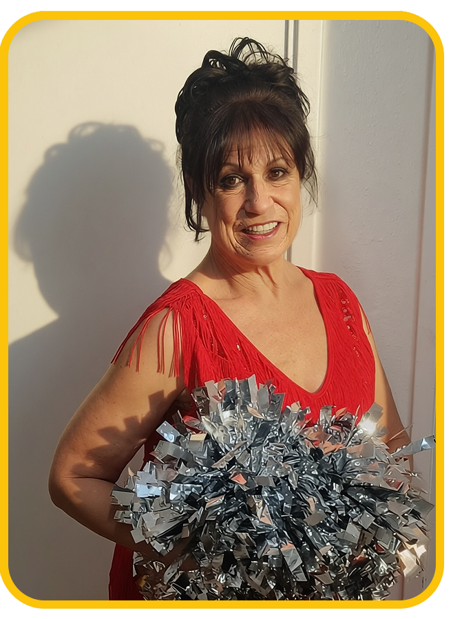Originally from North Dakota, I have lived in 7 states and settled here in 2016. I am a breast cancer survivor since 2004. I was a pom pom girl and cheerleader all of my high school years. I love dancing and my sisterhood with these lovely ladies.